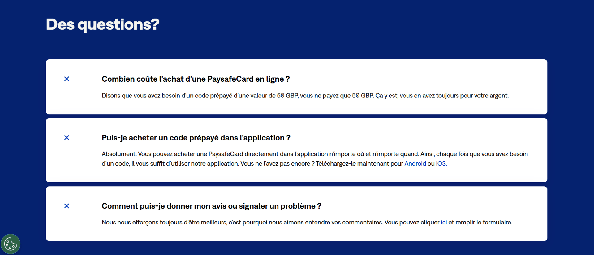 ©2025 paysafecard.com Wertkarten GmbH. Tous droits réservés. Prepaid Services Company Limited est agréée par la Financial Conduct Authority (FCA) au Royaume-Uni en vertu de la réglementation britannique de 2011 sur la monnaie électronique pour l’émission de monnaie électronique et d’instruments financiers (FRN : 900021). PaysafeCard Mastercard est émise par Prepaid Services Company Limited sous licence de Mastercard International Inc. Mastercard est une marque déposée de Mastercard International. Google Play est une marque commerciale de Google LLC.